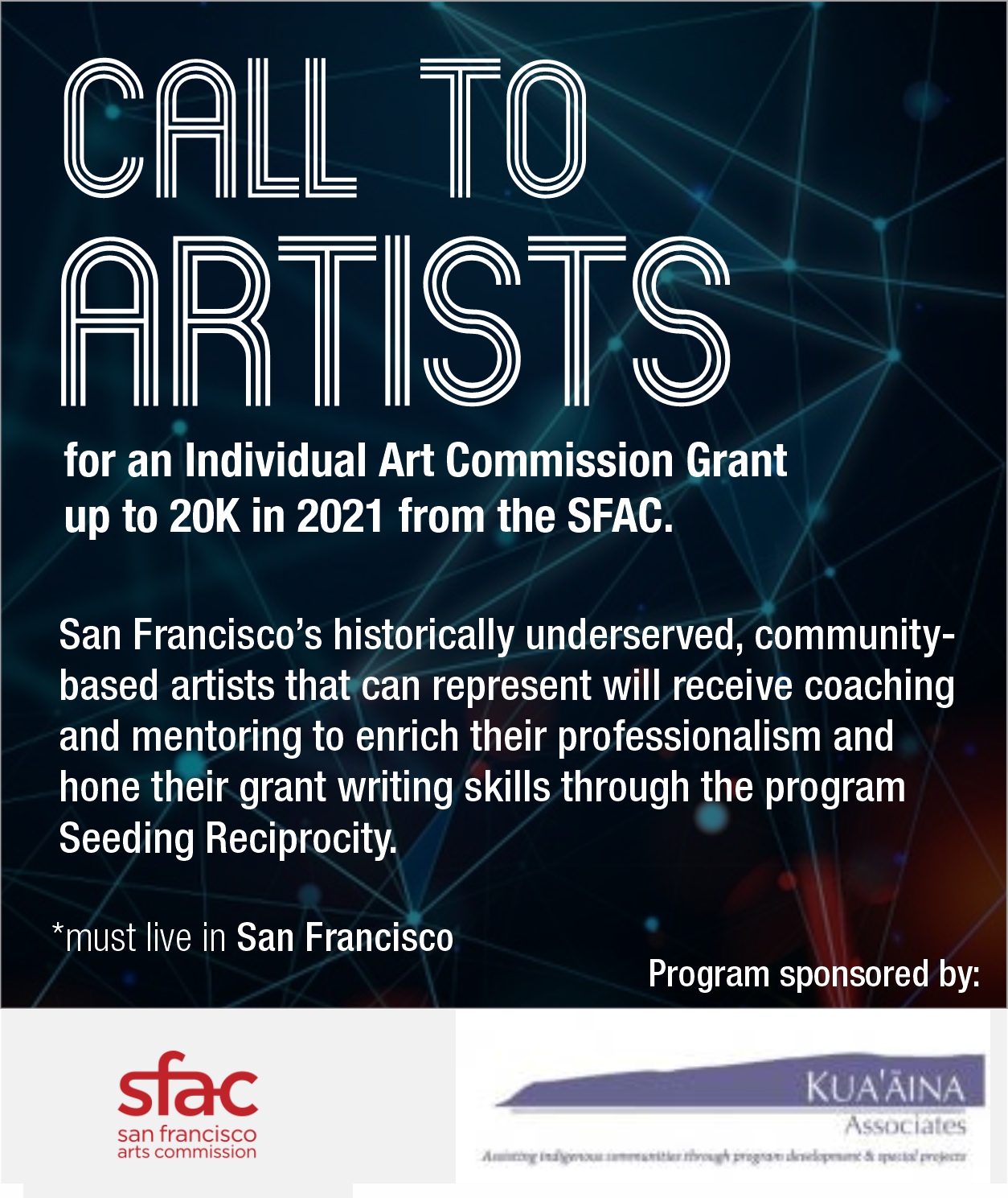 hone their fundraising skills. Seeding Reciprocity is funded by the San Francisco Arts Commission (SFAC)